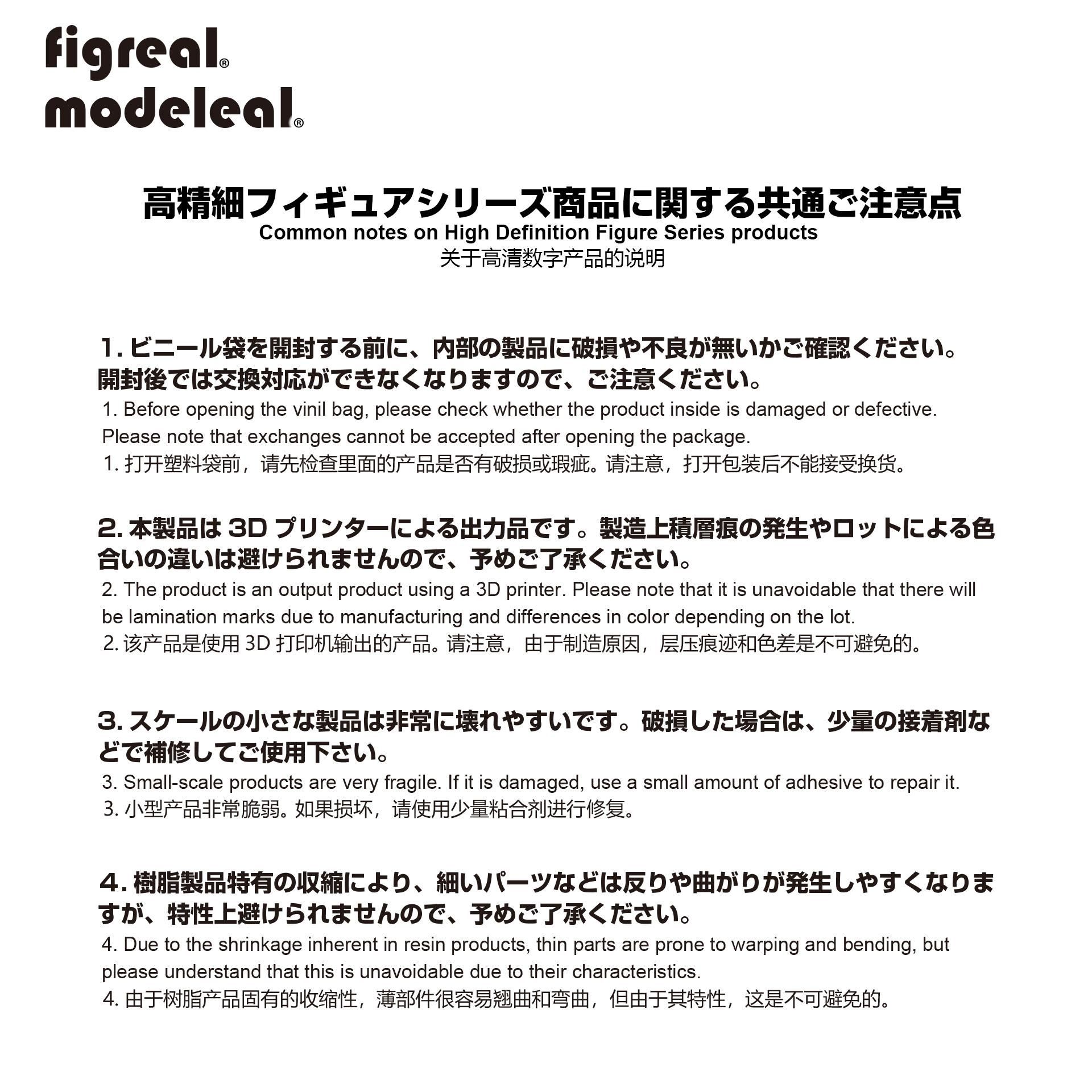 4.樹脂製品特有の収縮により、細いパーツなどは反りや曲がりが発生しやすくなりますが、特性上避けられませんので、予めご了承ください。